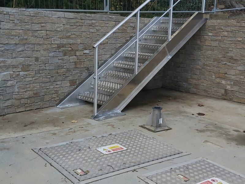 Dans le cadre de ce projet à La Roche-Jaudy, nous avons réalisé la fabrication sur mesure d’un escalier métallique permettant un accès sécurisé au poste de relevage de la station.